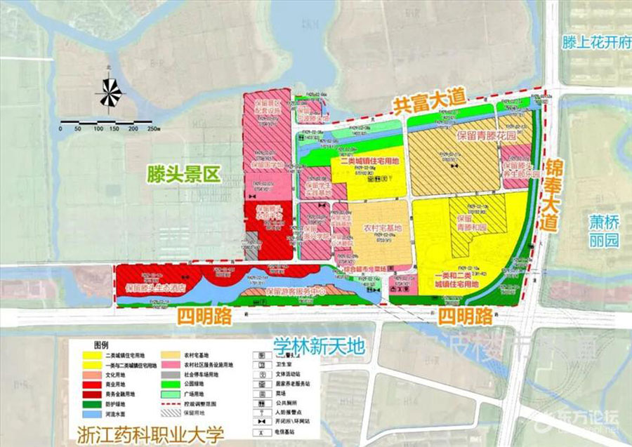 规划保留了很多现有设施,如宁波滕头馆、国学馆、滕头农创平台、学生实践基地、滕头养生颐乐园、滕头生态酒店等等,以及青滕花园、青滕和园等小区。