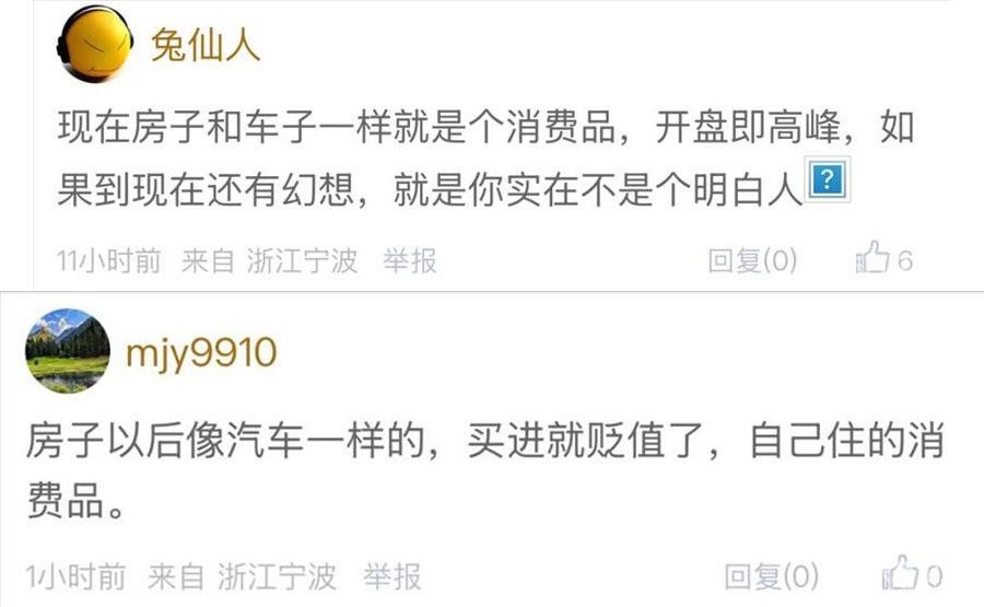 对于该网友的看法,东论有网友认为现在房子和车子一样就是消费品,开盘即高峰,买进的时候就贬值了~