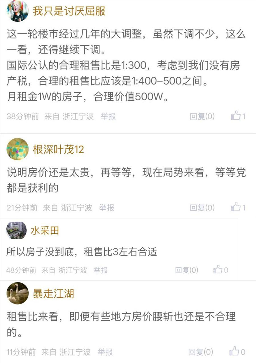 不过也有网友觉得,按照现在的租售比来说,房价还没到底……