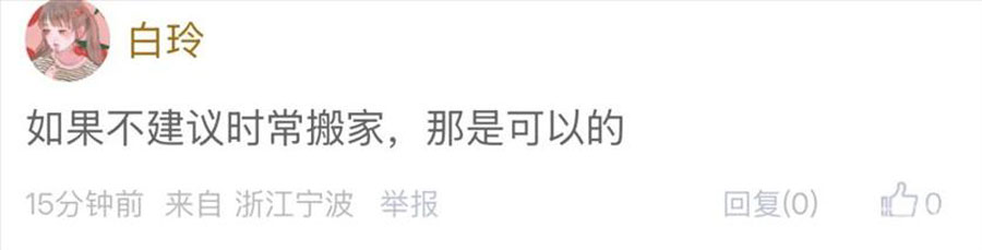 而网友@白玲则认为,租房的居住稳定性相对较差。但如果不常搬家的话,是可以接受的。
